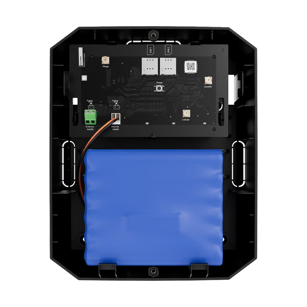La batterie interne Ajax RB (6,4V / 36Ah) a été spécialement conçue pour le Hub BP Ajax, garantissant le fonctionnement continu du système avec une autonomie pouvant atteindre jusqu’à 8 mois lorsque le Hub BP est configuré en mode économie d’énergie.